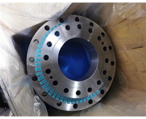 山西法蘭廠家1.工裝設(shè)計(jì)制造大型法蘭由2塊互成900的裝夾底板,2塊法蘭托板和2塊立板及4塊加強(qiáng)筋板組焊而成。為保證工裝的剛度,相連板塊焊縫應(yīng)開(kāi)坡口焊透,焊角高20—30mm。在法蘭托板上鉆有相應(yīng)的螺栓孔,保證法蘭能與法蘭托板用螺栓準(zhǔn)確連接,小端法蘭背面與托板之間留有能放入小型手動(dòng)千斤頂?shù)目障?,同時(shí)按順著立板方向在法蘭托板上開(kāi)出缺口,以便將彎頭裝入工裝之中,采用較厚鋼板制成近似槽型結(jié)構(gòu)的工裝,能夠滿足切削時(shí)對(duì)剛性的需求。大型法蘭的2個(gè)法蘭面是相互垂直的,而立式車床的工作臺(tái)是水平回轉(zhuǎn)的,所以該工裝的主要功能是利用大端法蘭上的螺栓孔把工裝與法蘭連接在一起。工裝裝夾在工作臺(tái)上時(shí)應(yīng)保證被加工的法蘭平面與立式車床工作臺(tái)同心并平行。